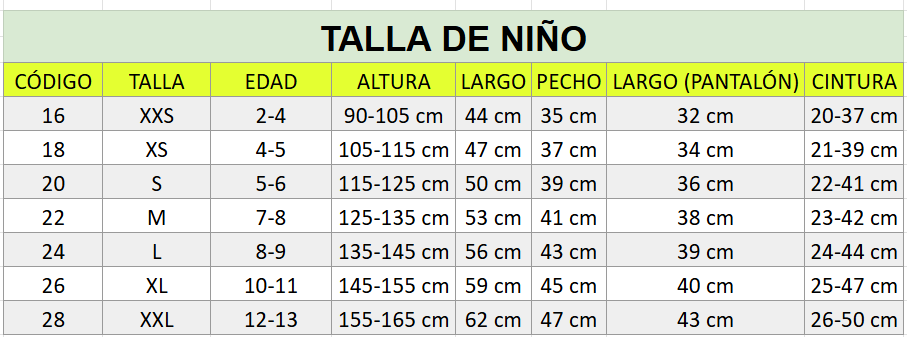 1ª Talla niño